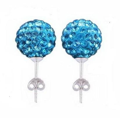 Boucles D'oreilles Clous Style Shamballa Cristal 1cm - Bleu Turquoise