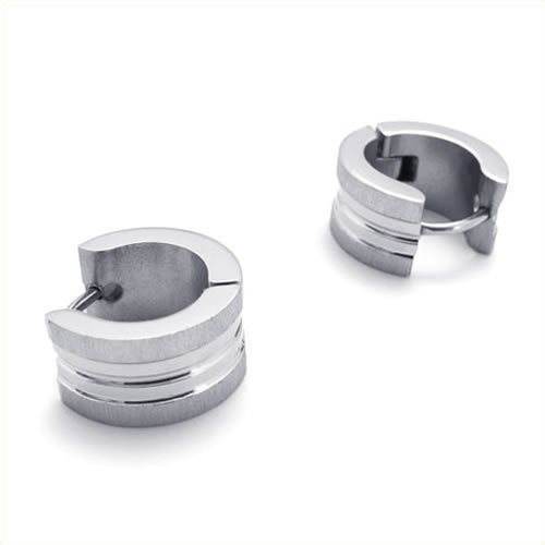 KONOV Bijoux Boucles d'oreilles Homme - Anneaux à Charnière - Acier Inoxydable - pour Homme - Couleur Argent - Avec Sac Cadeau - F19696: KONOV: Amazon.fr: Bijoux