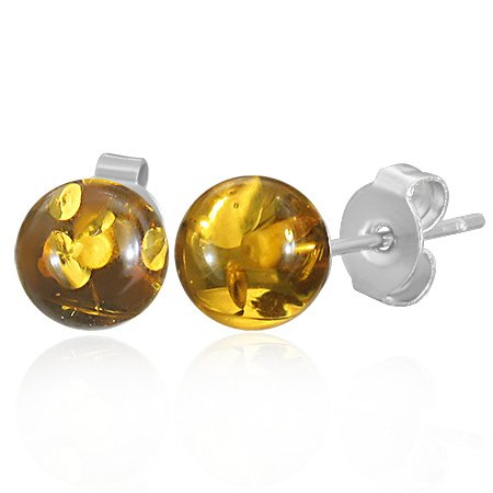 Boucles d'Oreilles - Clous en Acier Inoxydable - 6mm - Pierre d'Ambre