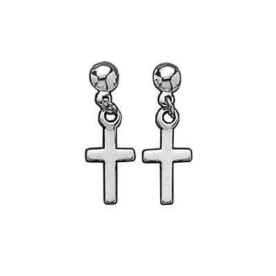 Boucles d'Oreilles en argent 925/000 Clous Pendants Croix - Bijoux Unisexe