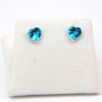Boucles D'oreilles en Argent Fin et Zirconium Bleu Turquoise en Forme de Coeurs de 6 mm ( Neuf Marketplace ) Pour un style simple mais élégant,