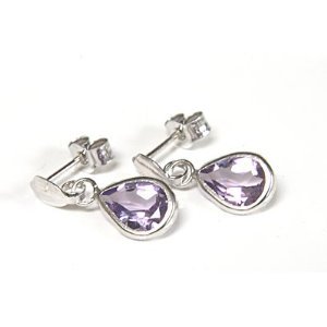 Boucles d'oreille en Or Blanc 9ct 375/1000, en forme de Larme, serties d'Améthystes