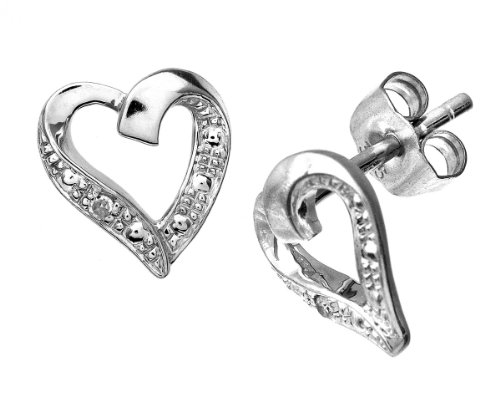 Boucles d'oreilles - Femme - Coeur - Or Blanc 375/1000 (9 Cts) 0.85 Gr - Diamant: Amazon.fr: Bijoux