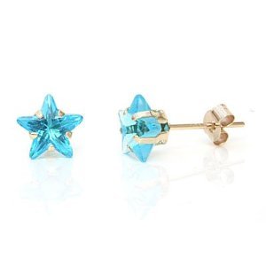 Clous d'oreille en Or 9ct 375/1000, Etoiles Bleues