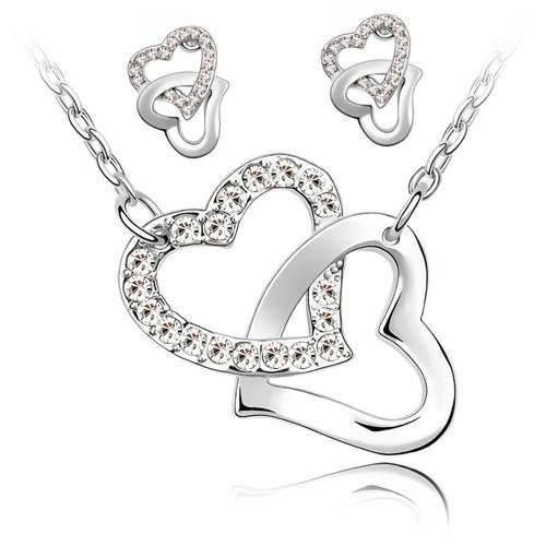 Parure Collier et Boucles d'oreille 2 Coeurs entrelacés Cristal - Blanc
