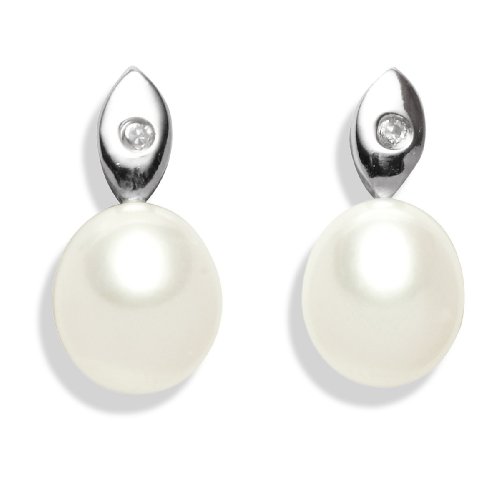 Valero Pearls - 60020013 - Boucles d'Oreilles Femme - Argent 925/1000 - Diamant - Perles d'eau douce: Amazon.fr: Bijoux