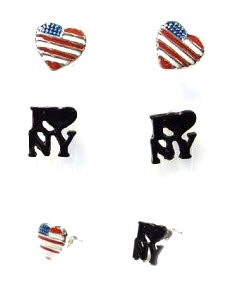 2 paires de Boucles d'oreilles Clous Drapeau Coeur Américain et I Love New York Bijou Fantaisie Neuf. Bijoux Fantaisie (1)