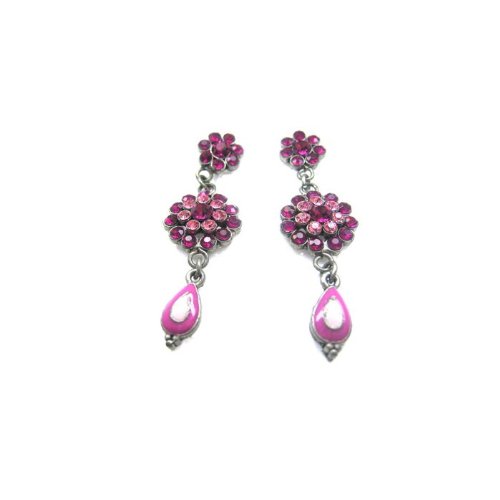 boucles d'oreilles (69 bijou fantaisie collier metal couleur argent strass bijou fantaisie boucles d'oreilles metal rose fuchsia fermeture clous 061104.