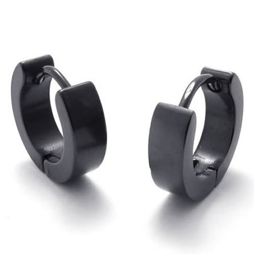 Konov bijoux boucles d'oreilles homme anneaux à charnière acier inoxydable pour homme couleur noir avec sac cadeau f21523 - KONOV . Konov bijoux boucles d