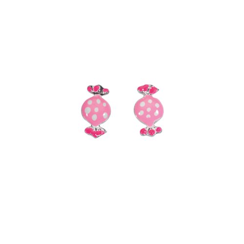 Boucles d'oreille enfant argent rhodié bonbon rose. 925/1000e et émail (1,74 g) de chez 'suzette et benjamin Boucles d'oreilles émail argent 925/1000
