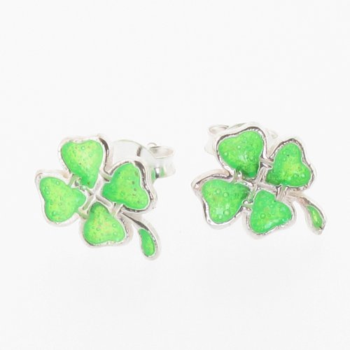 Boucles d'Oreilles à Clous en Argent Sterling et Email - Trèfles à Quatre Feu...