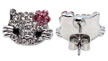 Hello Kitty boucles d'oreille plaque en argent ,Ceci est fait d'un alliage de bijoux qui le fait ressembler à argent réel. Joliment fini à la main et poli à la main, l'air vraiment jolie. Emballé dans une jolie pochette en velours. Ces boucles d'oreilles ont pierres en cristal Swarovski