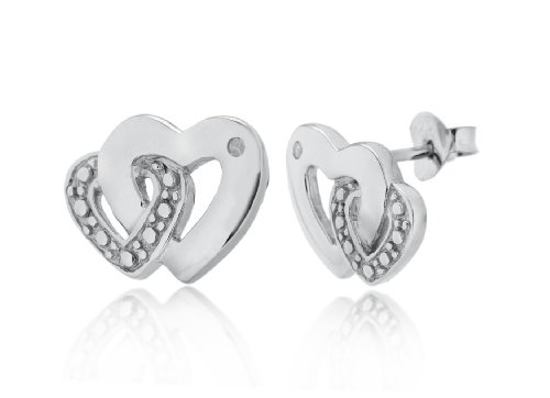 Boucles d'oreilles fantaisie - Femme - Coeur - Argent 2.3 Gr - Diamant 0.05 Cts