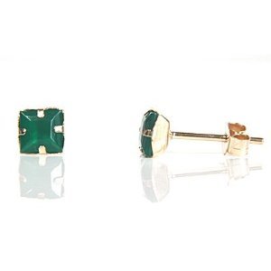Clous d'oreille en Or 9ct 375/1000, sertis d'Agates Vertes Carrés