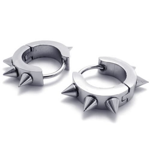 KONOV Bijoux Boucles d'oreilles Homme - Anneaux à Charnière - Punk Rock - Acier Inoxydable - pour Homme - Couleur Noir Argent - Avec Sac Cadeau - F21522