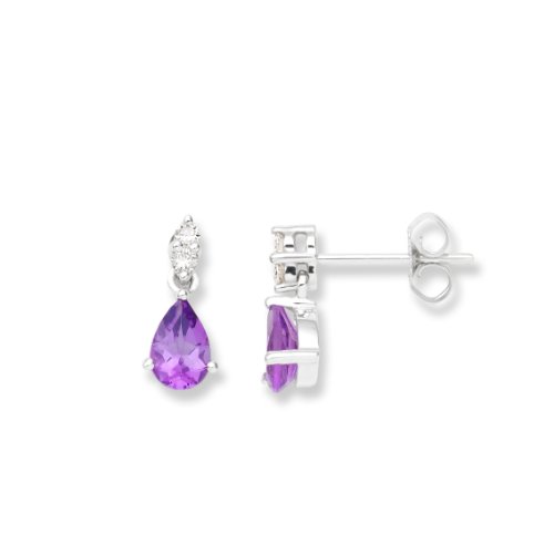 Miore - USP007E5W - Boucles d'Oreilles femme - Or blanc 375/1000 (9 carats) 0.84 gr - Améthyste et Diamant 0.08 cts