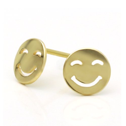 14K Gold Stud Earring Smile Happy Face Yellow Gold Earring W/ Safety-Back For Kids & Teens