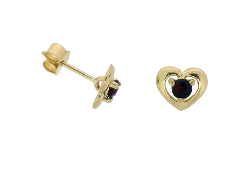 BijouxPourTous Boucles d'oreille Femme - EY-C270-GAR Pendantes Femme - Or jaune (9 carats) 0.5 Gr - Grenat, Boucles d'oreille Femme - EY-C270-GAR - Coeur