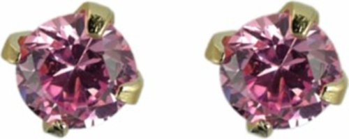 R & T - P51047 - Boucles d'Oreilles Femme - Plaqué Or - Oxyde de Zirconium Rose