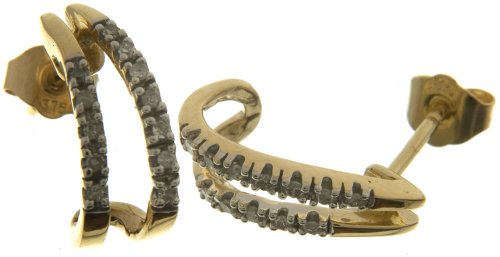 Boucles d'oreille - Femme - Or jaune (9 carats) 1.43 Gr - Diamant 0.1 Cts