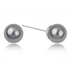 Girly Play Cristal Swarovski - Boucles D'Oreilles Clou En Perle Nacrée De Tahiti - Couleur : Plomb
